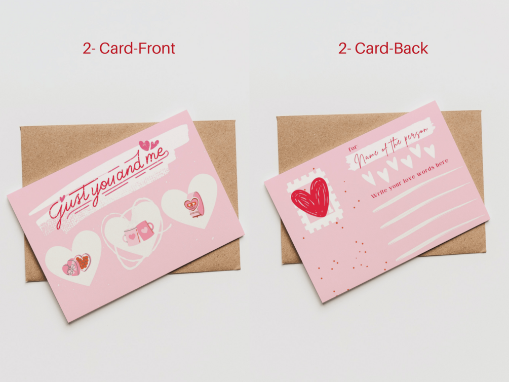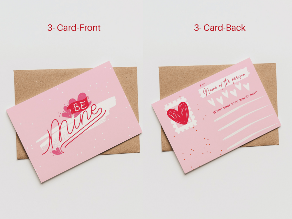 Set 5 Custom Pink Valentine Postcards - Canva Template