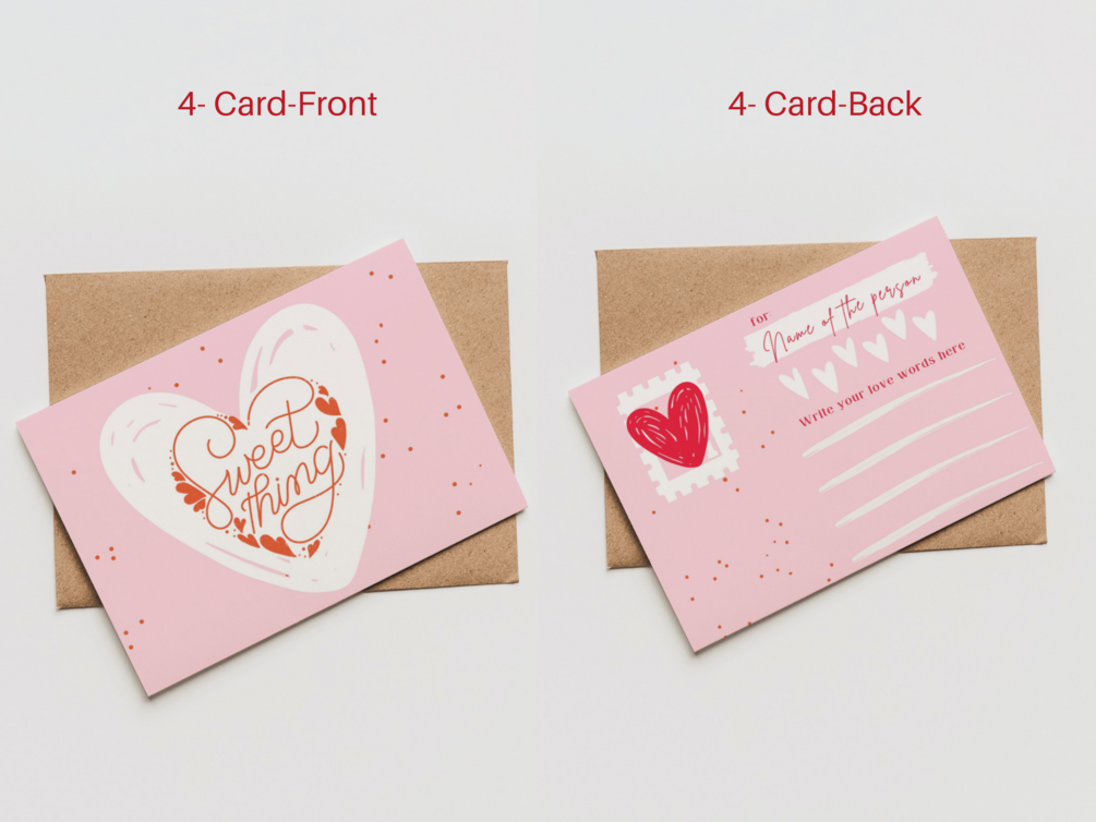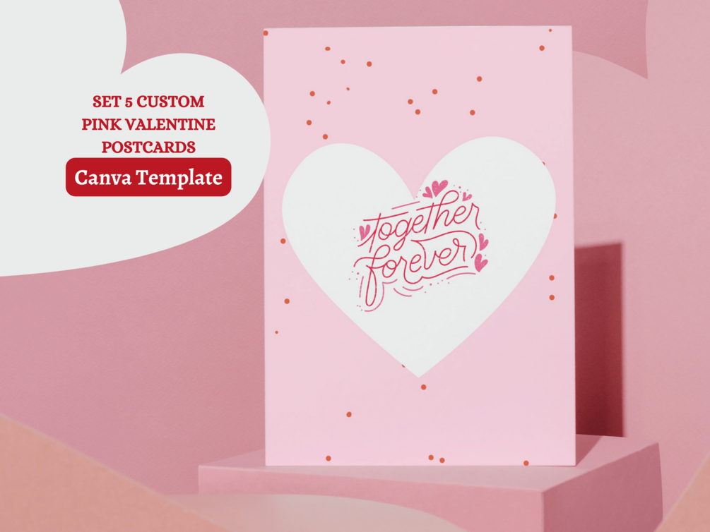 Set 5 Custom Pink Valentine Postcards - Canva Template